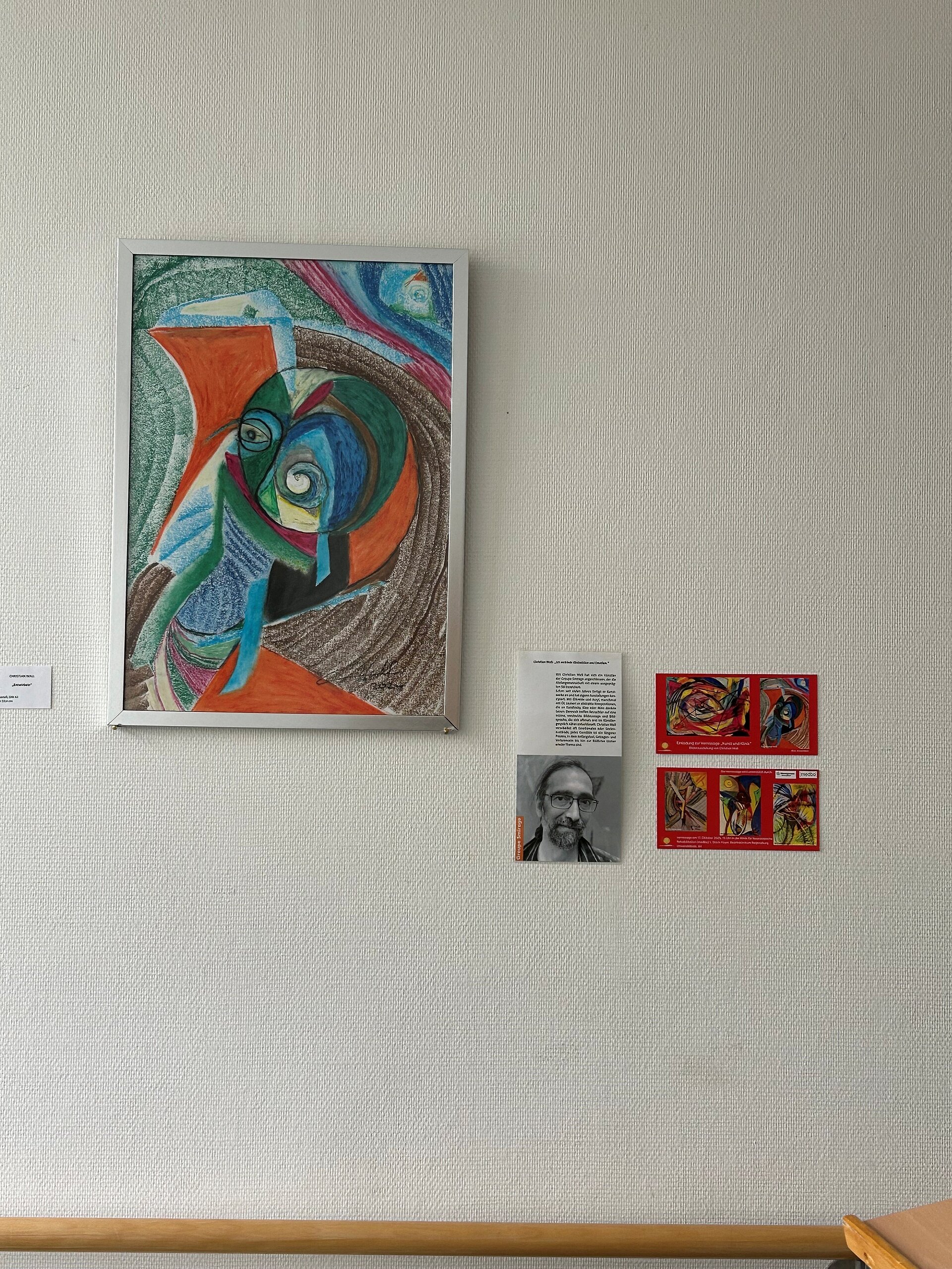 Die Ausstellungsreihe „Kunst und Klinik“ -zweitesLEBEN präsentiert eine farbenprächtige Ausstellung des Künstlers Christian Wall. Die Bilder ziehen den Betrachter durch Formen und Farben in den Bann. Christian Wall arbeitet als Künstler bei der Pfennigparade in München. Er selber wurde durch einen Unfall aus seinem ersten Leben gerissen und gestaltet sein Zweites.
